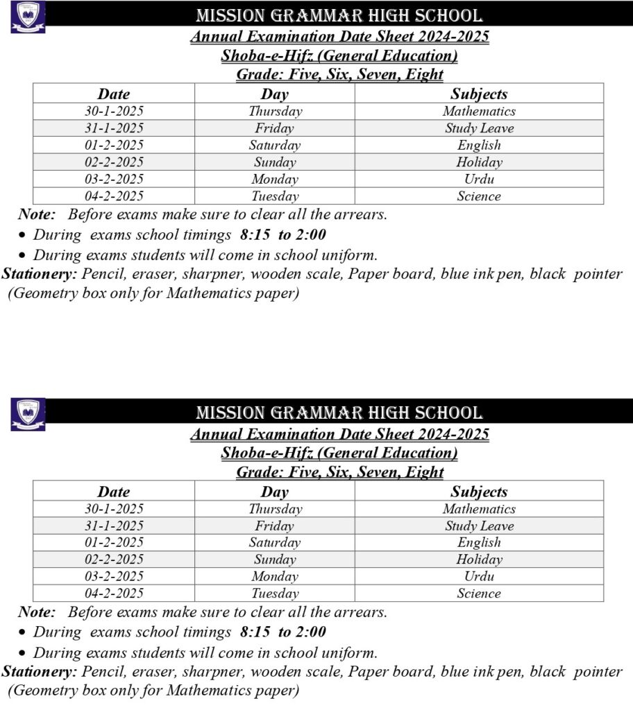 - For Hifz ul Quran MGS is affiliated with Wafaq ul Madaris.